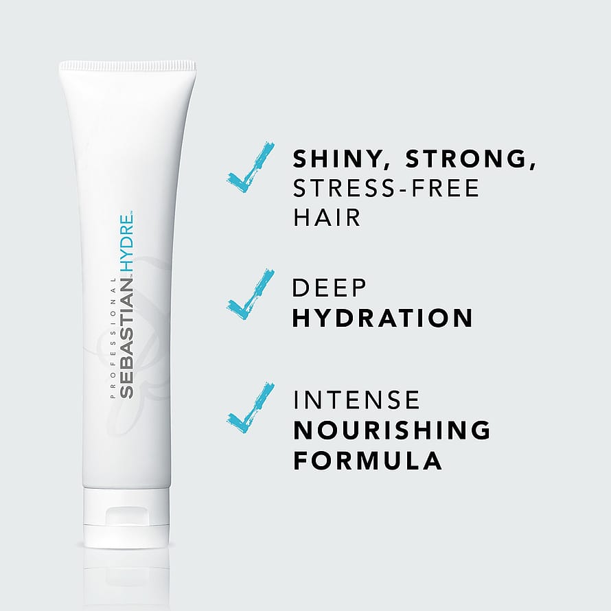 Anna vaurioituneille hiuksille syväkosteutus Sebastian Professional Hydre -hoidolla. Tämä kosteuttava naamio syväkosteuttaa kuivat ja kemiallisesti käsitellyt hiukset jättäen jopa kähärät hiukset täydellisen hoidetuiksi ja silkinpehmeiksi. Sebastian-hoito auttaa hiuksia saamaan takaisin terveen ulkonäön antaen väriä suojaavaa kosteutta ja tuuhean tyylin.