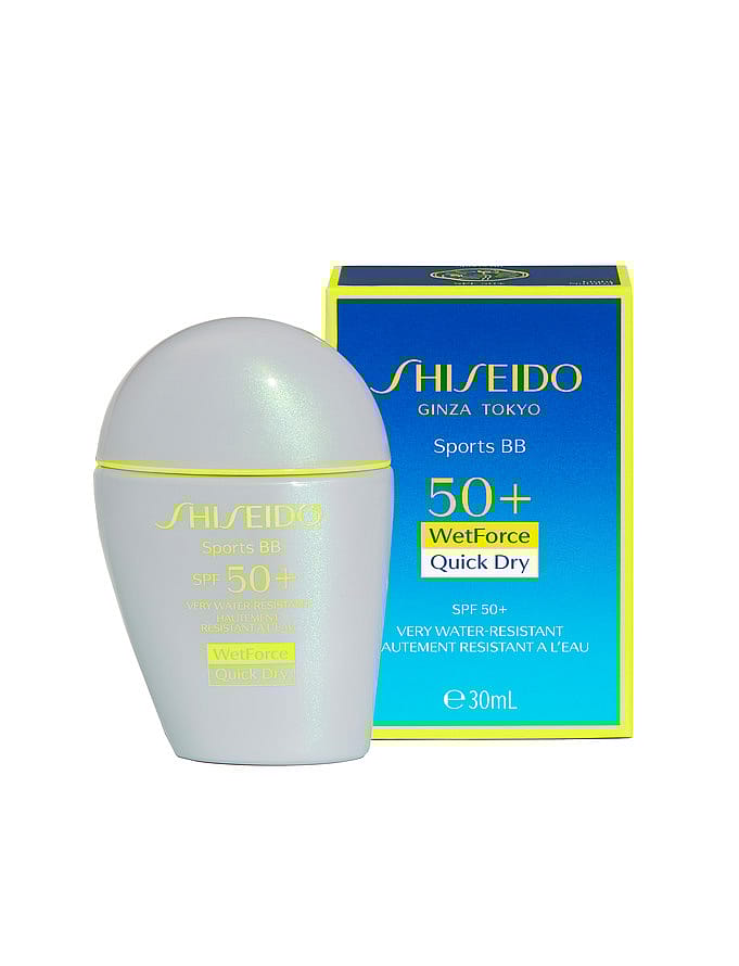 Shiseido on yhdistänyt meikin ja aurinkosuojan tähän Sport BB Cream -voiteeseen. Suojakerroin 50 suojaa tehokkaasti auringolta yhdellä kerroksella ja sävytetty voide luo iholle luonnollisen ja raikkaan lopputuloksen, joka kestää auringossa koko päivän. Quick Dry Technology saa hien kuivumaan nopeasti ja saa meikin kestämään pitkään kuuminakin päivinä. Shiseido Sport BB Cream on vedenkestävä. WetForce-teknologia tekee siitä entistä tehokkaamman hien tai veden kanssa kosketuksissa, joten kevyen meikattu tunne säilyy jopa uidessa.