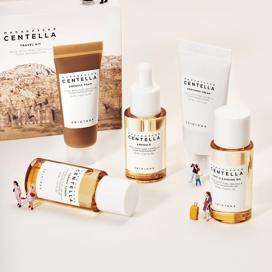 Täydellinen Centella-ihonhoitorutiini, jossa on 5 mini-kokoista tuotetta matkalle tai Centella-sarjan kokeiluun.