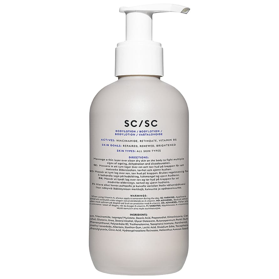 Tuote on saanut uuden nimen ja ulkoasun, mutta siinä on sama upea sisältö. Retinoate Lotion oli aiemmin nimeltään Active Body Emulsion. Tehokkaita tuloksia antava vartalovoide, joka kosteuttaa, korjaa ja uudistaa ihoa sekä tasoittaa ihon sävyä niasiiniamidin, retinoaatin (A-vitamiini) ja E-vitamiinin avulla. Syväkosteuttaa ihoa luonnollisilla kosteustekijöillä (NMF), kuten glyseriinillä ja B5-vitamiinilla. Auringonkukkaöljy ja karitevoi lukitsevat kosteuden ihoon ja pehmentävät ihoa, taaten miellyttävän tunteen iholla koko päivän. Hajusteeton koostumus sopii kaikille ihotyypeille ja imeytyy nopeasti levittämisen jälkeen. Vartalovoide kaikille ihotyypeille Kosteuttaa, korjaa ja uudistaa ihoa Sisältää A-vitamiinia ja niasiiniamidia