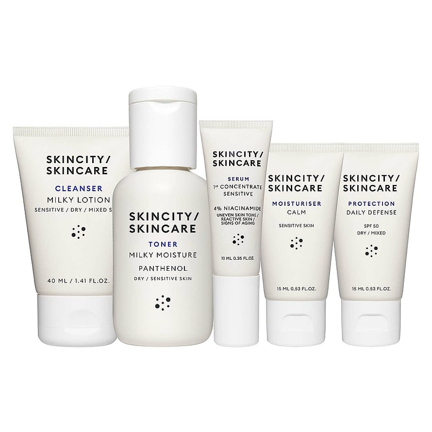 Saavuta ihonhoitotavoitteesi sekaiholle ja rasvaiselle iholle kehitetyn Skincity Skincare Start Set - Dry/Sensitive. Setti sisältää täydelliseen ihonhoitorutiiniin kuuluvat tuotteet matkakoossa, joten voit puhdistaa, kosteuttaa ja suojata ihoasi missä tahansa.