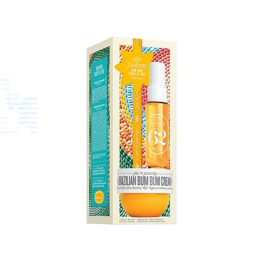 Cheirosa 62 perfume mist: Alcohol Denat., Aqua (Water, Eau), Parfum (Fragrance), Benzyl Alcohol, Benzyl Salicylate, Hydroxycitronellal, Coumarin, Limonene, Linalool, Benzyl Benzoate, Citral, Eugenol. Brazilian Bum Bum Cream: Aqua (Water, Eau), Methyl Glucose Sesquistearate, Phenyl Trimethicone, Dodecane, Caprylic/Capric Triglyceride, Parfum (Fragrance), Cetearyl Alcohol, Glyceryl Stearate Citrate, Glyceryl Caprylate, Glycerin, Cetyl Alcohol, Paullinia Cupana (Guaraná) Seed Extract, Theobroma Grandiflorum (Cupuaçu) Seed Butter, Cocos Nucifera (Coconut) Oil, Euterpe Oleracea Fruit (Açaí) Oil, Bertholletia Excelsa (Brazil Nut) Seed Oil, Sodium Hyaluronate, Squalane, Ilex Guayusa Leaf Extract, Ilex Paraguariensis Leaf Extract, Daucus Carota Sativa (Carrot) Seed Oil, Bixa Orellana Seed Extract, Tocopherol, Mica, Sodium Phytate, Xanthan Gum, Sorbitan Isostearate, Sodium Stearoyl Glutamate, Hydroxyethyl Acrylate/Sodium Acryloyldimethyl Taurate Copolymer, Ethylhexylglycerin, Phenoxyethanol, Benzyl Alcohol, Benzyl Salicylate, Citral, Coumarin, Hydroxycitronellal, Limonene, Tin Oxide, CI 77891 (Titanium Dioxide)