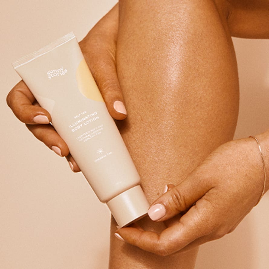 Sunny Storiesin illuminating body lotion -vartalovoide kuuluu Gradual Tan -sarjaamme, mikä tarkoittaa, että saat kevyemmän itseruskettavan tuotteen vaikutuksen. Gradual tan -tuote on myös täydellinen valinta, jos et ole ennen käyttänyt itseruskettavia tuotteita, koska tuotteitamme voidaan käyttää useana päivänä tasaisen ja päivettyneen tuloksen saamiseksi. Nyt on helppoa luoda päivettynyt iho omassa kylpyhuoneessa ja kuvitella olevansa hetken lämpimämmillä leveysasteilla.