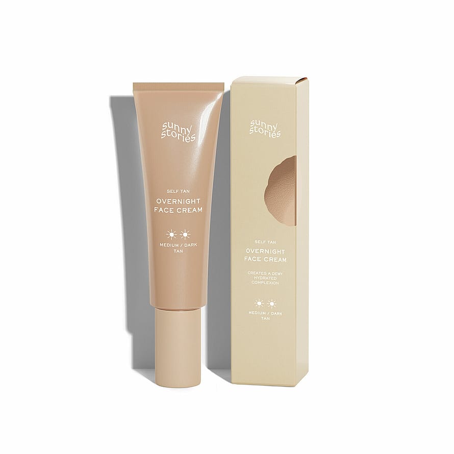 Sunny Storiesin Overnight Face Cream kuuluu overnight tan -sarjaamme, mikä tarkoittaa, että itseruskettava tuote vaikuttaa yön aikana. Aurinkojen määrä pakkauksissamme kertoo itseruskettavien tuotteidemme voimakkuudesta. Sunny Storiesin overnight-tuotteita voidaan käyttää, kunnes haluttu sävy on saavutettu, ja niitä voidaan käyttää viikoittain. Nyt on helppoa luoda päivettynyt iho omassa kylpyhuoneessa ja kuvitella olevansa hetken lämpimämmillä leveysasteilla.