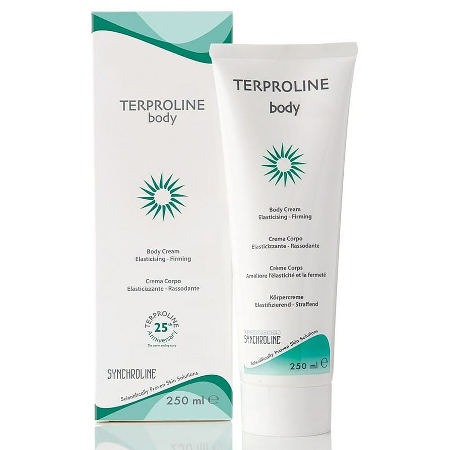 Terproline Bodya käytetään kuten tavallisen vartalovoiteen tavoin. Voiteella on kosteuspitoisuutta sääteleviä ominaisuuksia, mikä kiihdyttää solujen uusiutumista ja parantaa ihon kimmoisuutta. Se parantaa ihon rakennetta ja vahvistaa ihon omaa suojaa. Sopii myös täydentämään kortisonihoitoa. Pakkauskoko: 250 mlTerproline-sarjan tuotteet tasapainottavat ihoa ja korjaavat vaurioituneita ja/tai ikääntyneitä soluja. Tähän tarvitaan useiden, ihossa eri tavoin vaikuttavien ainesosien yhteisvaikutusta. Terproline pystyy stimuloimaan ihon viittä tasapainottavaa toimintoa, jotka ovat kosteutus, ravitseminen, hapettuminen, suojaus ja uudistuminen. Koska Terproline stimuloi ihon mikrorakennetta, sillä on tehokkaastikudoksia korjaava vaikutus. Käyttöaiheet:Kortisonihoitoa saava ihoIkääntynyt ihoArpikudos (mm. Palovammat ja akne)Venytysjuovat (raskausarvet)Raskauden aikana ja jälkeen (vatsa ja rinnat)Palauttaa ja korjaa ihoa mikrohionnan, kemiallisen kuorinnan tai AHA-happokuorinnan jälkeen