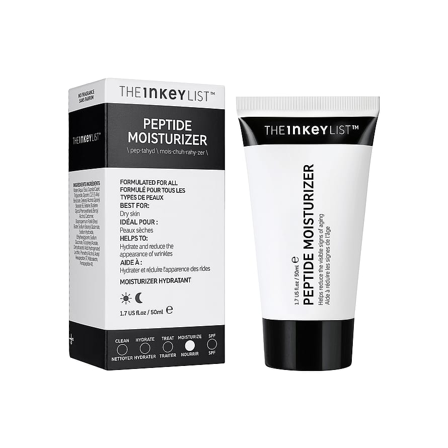 Hoitava mutta nopeasti imeytyvä päivävoide, joka sisältää kahta peptidiä, jotka tukevat ihon luonnollista kollageenintuotantoa ja kosteuttavat ihoa. Peptidit ovat pieniä, mutta niissä on voimakas aminohappoketju, joka tukee ihon kiinteyttäviä, kosteuttavia proteiineja. Jatkuvassa käytössä nämä peptidit auttavat tukemaan luonnollista kollageenin tuotantoa ja tekevät ihosta nuorekkaan ja mukavan tuntuisen.