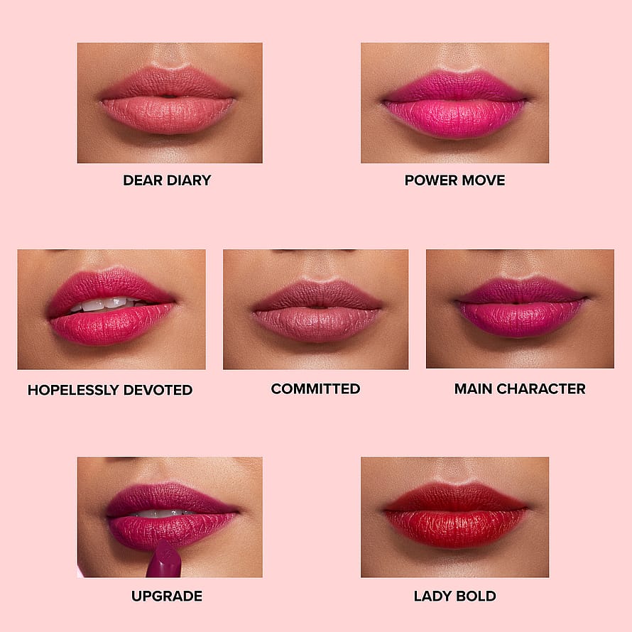 Kun haluat voimakkaan ja rohkean lookin, levitä Lady Bold -huulipunaa suoraan puhtaille, kuiville huulille. Käytä sydämenmuotoista kärkeä rajaamaan huulet täydellisesti ja maalaa sitten huulet tasaisella puolella.