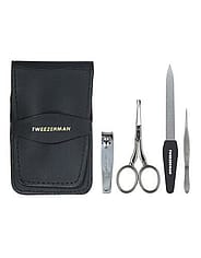 "Essential Grooming Kit on käytännöllinen setti miehelle, joka haluaa ensiluokkaisia välineitä kulmakarvojen, kasvojen ja kynsien hoitoon – kaikki yhdessä siistissä säilytystaskussa. Laukku sisältää 4 välinettä: Tweezerette nyppii kulmat, sisäänkasvaneet karvat ja tikut. Turvallisilla ja helppokäyttöisillä saksilla siistit nenä-, korva- ja kasvokarvat. Kynsileikkuri sormien kynsille. Kynsiväline kynsinauhojen työntämiseen, kynsien puhdistamiseen ja kynsien viilaukseen. Täydellinen lahja poikaystävälle, veljelle tai isälle!