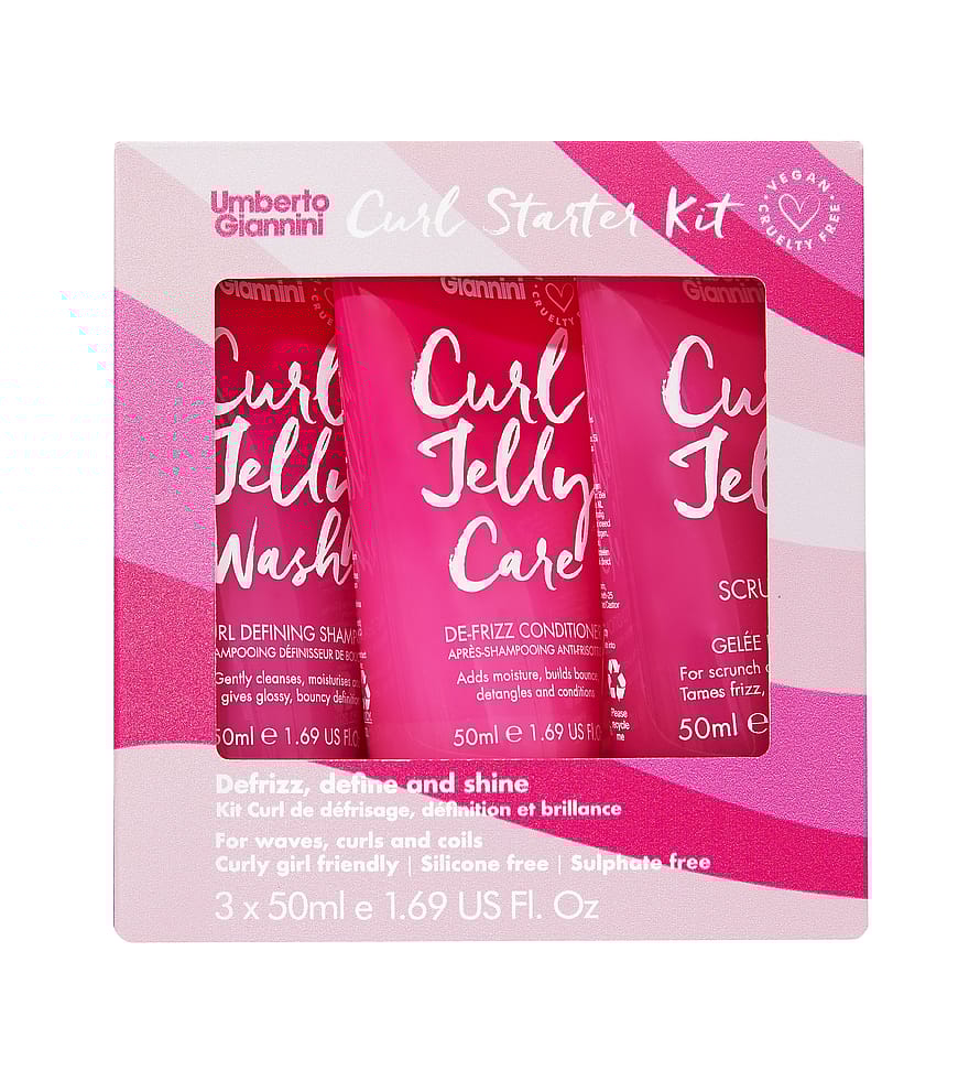 Curl Jelly Starter Kit on aloituspakkaus, joka sisältää kolme myydyintä Curl Jelly -tuotetta: Curl Jelly Shampoo, Curl Jelly Care Conditioner ja Curl Jelly Scrunching Jelly.