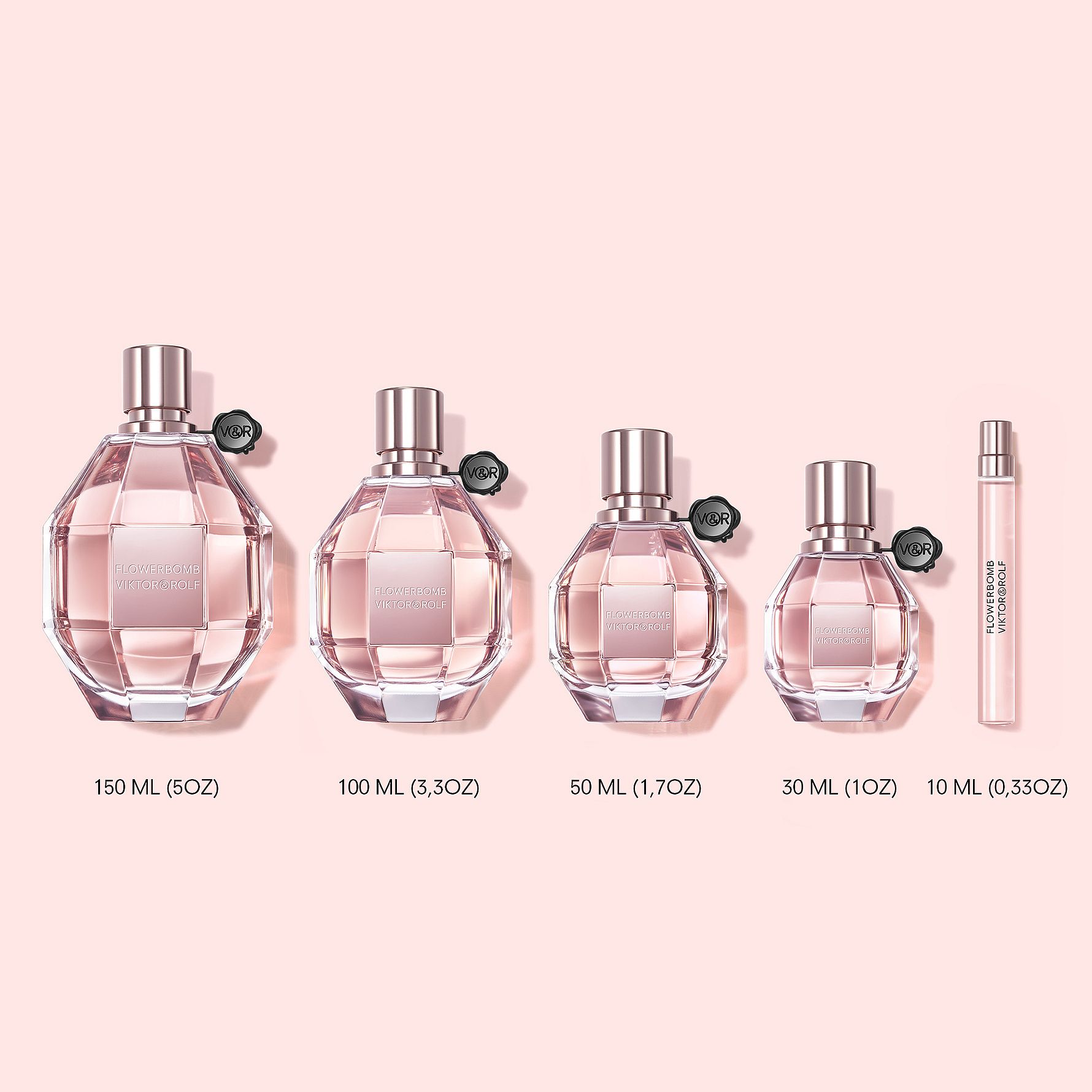 Flowerbomb on pakattu ikoniseen, vaaleanpunaista timanttia muistuttavaan fasettipulloon – täydellinen yhdistelmä voimaa ja naisellisuutta. Pehmeä vaaleanpunainen sävy symboloi feminiinisyyttä, kun taas timantin muoto tuo esiin Viktor & Rolfin näkemyksen tyylikkyyden ja voiman harmoniasta. Pullo ei ole vain tuoksun säiliö, vaan kunnianosoitus kauneuden monimuotoisuudelle.