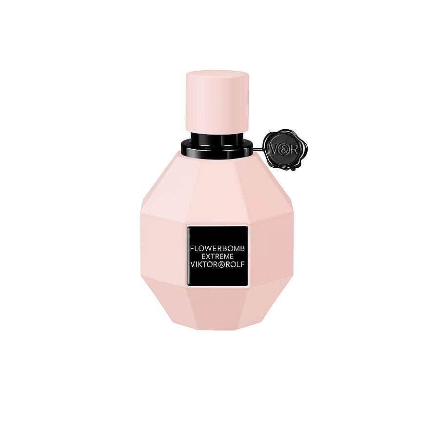 Flowerbomb Extreme esittäytyy Viktor & Rolfille tunnusomaisessa kranaatinmuotoisessa pullossa, mattapintaisena vaaleanpunaisena ja suljettuna mustalla vahasinetillä. Tämä elegantti muotoilu heijastaa tuoksun syvyyttä ja vahvuutta – itsevarma, säteilevä ja poikkeuksellisen ylellinen.