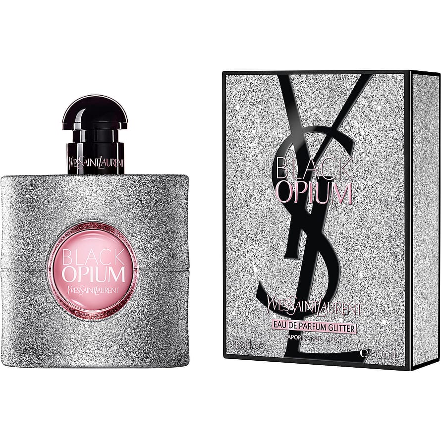 Black Opium Glitter on Yves Saint Laurentin uusi vaahtokarkkimyskituoksu. Tämä pitkäkestoinen tuoksu kahvin, valkoisten kukkien ja vaahtokarkkimyskin vivahteilla on Black Opium -perheen uusin jäsen, joka sytyttää magneettisen seksikkyyden. Ikonisella Black Opium -pullolla on yllään uusi couture-hopeamekko, joka juhlistaa loputtomien iltojen loistoa. Itse pullo symboloi itseluottamusta ja seksikkyyttä. Vaaleanpunainen lasi-ikkuna ja kuvioitu glitterpullo on suunniteltu välittämään kauneutta ja nautintoa.